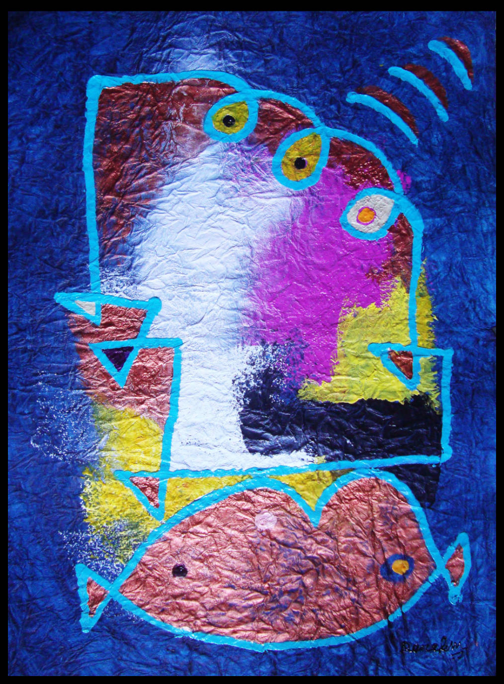 (Acrylic, torn pieces of FELT and art card paper, Oil Pastels)